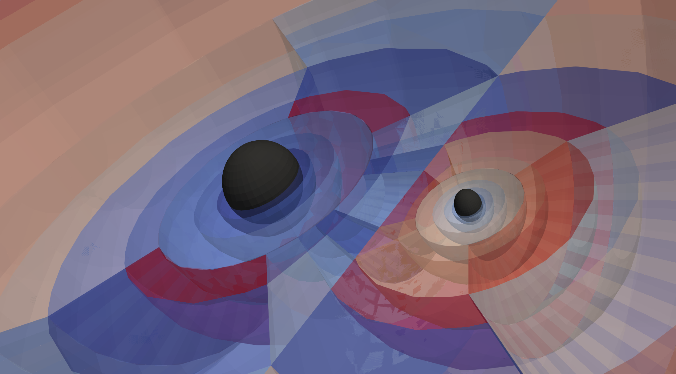 Numerical Relativity (NR) solves the full Einstein field equations directly on a computer by discretising spacetime into three-dimensional spatial slices that evolve over time. These simulations provide a detailed, fully general-relativistic description of phenomena and capture all of the physics of the system such as tidal deformations and horizon interactions, as shown in Figure 1. Since the first successful binary black-hole merger simulation in 2005, NR has remained the only means of accurately modelling the merger from first principles.